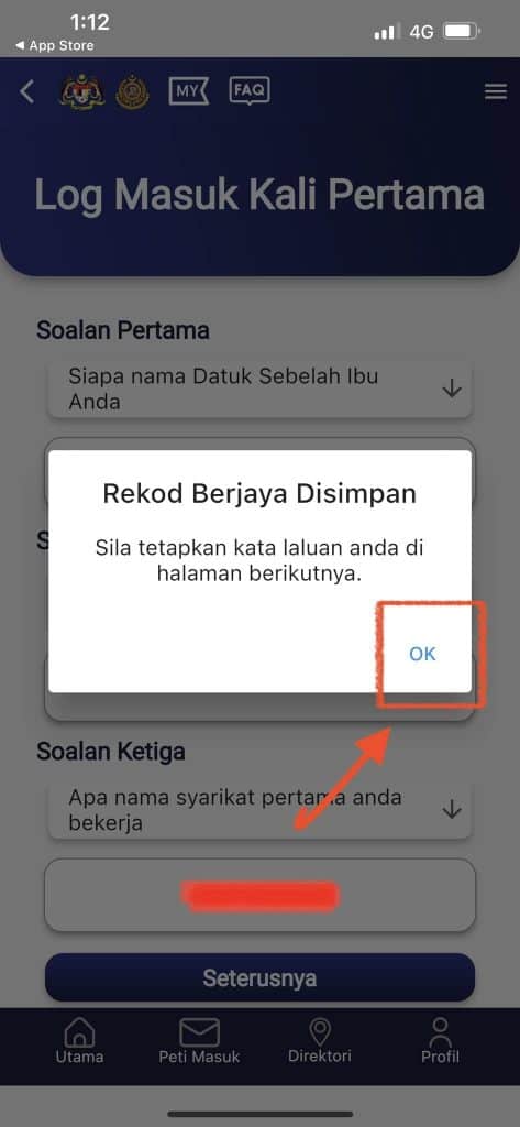 - Seterusnya jawab soalan keselamatan dan klik “Seterusnya”