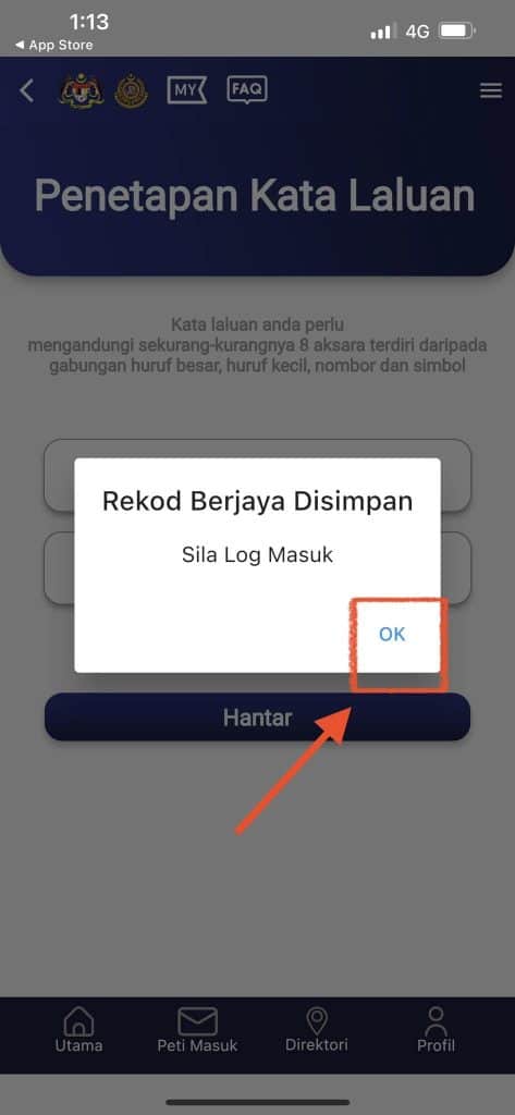 - Klik “OK” bila ada pop-up “Rekod berjaya Disimpan”