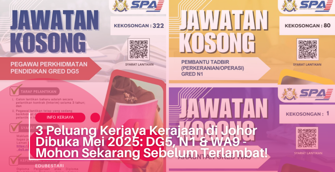 3 Peluang Kerjaya Kerajaan di Johor Dibuka Mei 2025: DG5, N1 & WA9 – Mohon Sekarang Sebelum Terlambat!