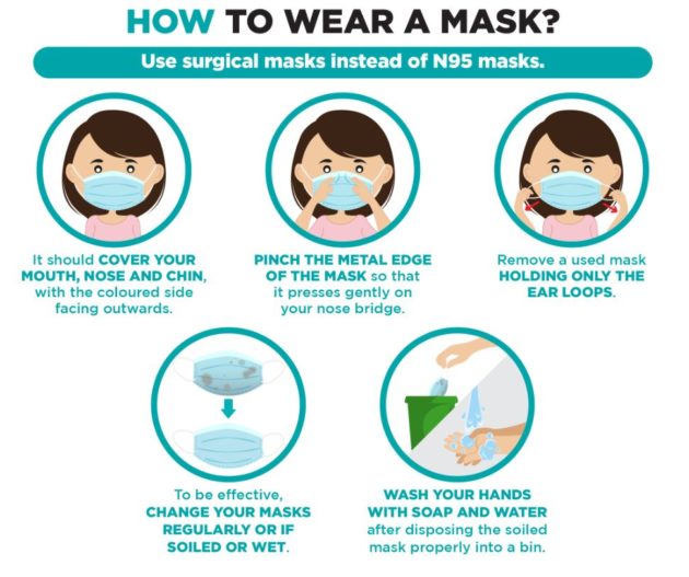 Salah satu langkah penting selain sentiasa mencuci tangan adalah praktikkan diri dengan pemakaian topeng muka terutama kepada individu yang tidak sihat.