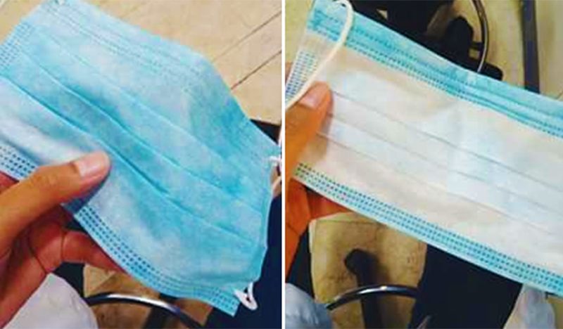 - Pilih topeng muka yang betul iaitu mempunyai dua bahagian. Bahagian biru di luar kerana ia kalis air manakala putih di dalam untuk serapan jika kita batuk.