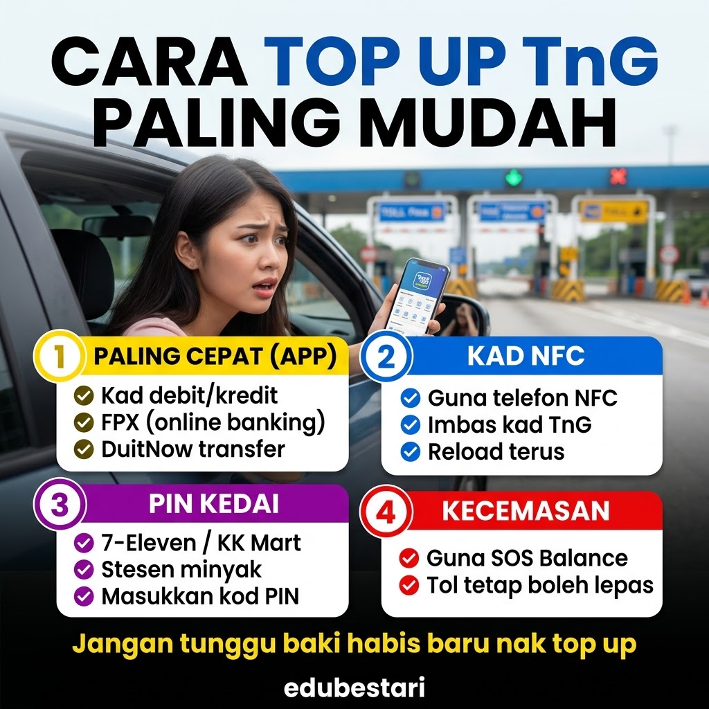 Ramai pengguna masih keliru tentang kaedah terbaik untuk menambah nilai (top up) sama ada melalui aplikasi, kad fizikal atau kaedah alternatif. Hakikatnya, sistem TnG kini telah berkembang menjadi ekosistem digital yang lengkap dengan pelbagai pilihan reload yang pantas dan fleksibel.