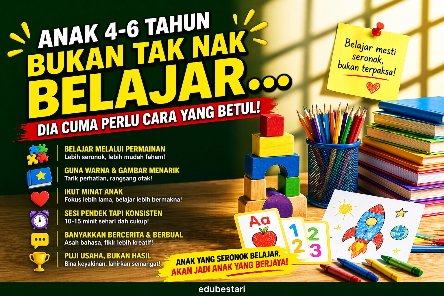 Jawapan Pantas Untuk galakkan minat belajar anak umur 4–6 tahun, gunakan pendekatan pembelajaran berasaskan…