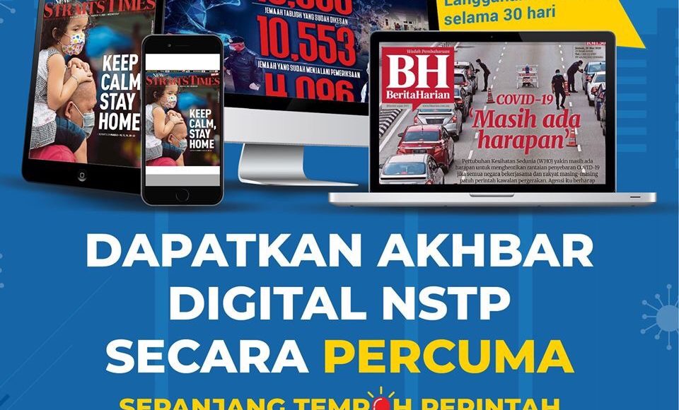HomeInfoCOVID-19: Dapatkan Akhbar Digital NSTP Secara PercumaInfo COVID-19: Dapatkan Akhbar Digital NSTP Secara Percuma On Mar 26, 2020 Last updated Mar 26, 2020 Share FacebookWhatsAppTelegramTwitterEmail Dapatkan 30 hari langganan akhbar digital NSTP secara PERCUMA sepanjang tempoh Perintah Kawalan Pergerakan dari 26 Mac hingga 14 April 2020. Untuk melanggan sila ikut arahan mudah di bawah. Untuk langganan, sila layari www.nstp.com.my/mco Share FacebookWhatsAppTelegramTwitterEmail