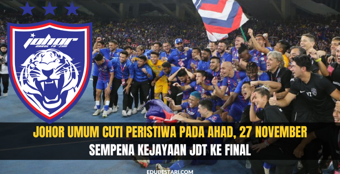 Ikuti perkongsian di bawah untuk maklumat lanjut pengumuman cuti buat rakyat Johor sempena Kejayaan JDT Ke Final.
