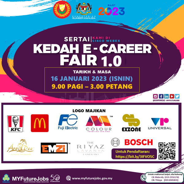 Pencari kerja yang berminat nak ikuti Kedah E-Career Fair 1.0 ini boleh buat pendaftaran sebelum tarikh temuduga. Pelbagai peluang pekerjaan ditawarkan oleh pelbagai majikan syarikat terkemuka.