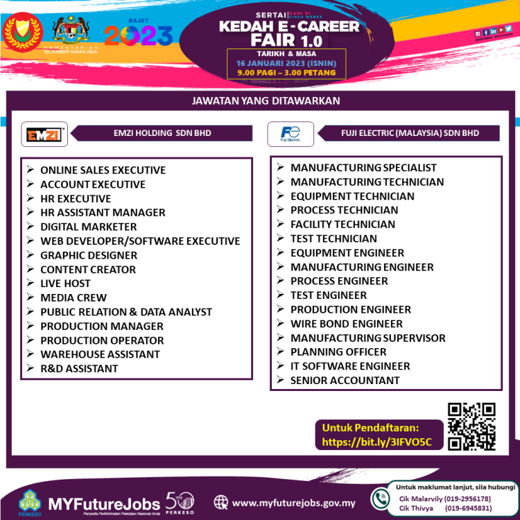 Pencari kerja yang berminat nak ikuti Kedah E-Career Fair 1.0 ini boleh buat pendaftaran sebelum tarikh temuduga. Pelbagai peluang pekerjaan ditawarkan oleh pelbagai majikan syarikat terkemuka.