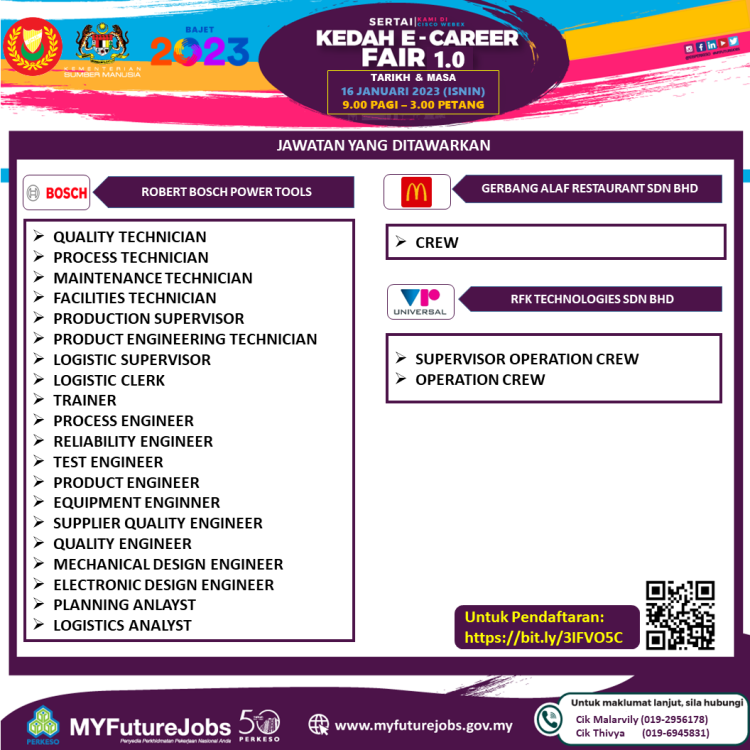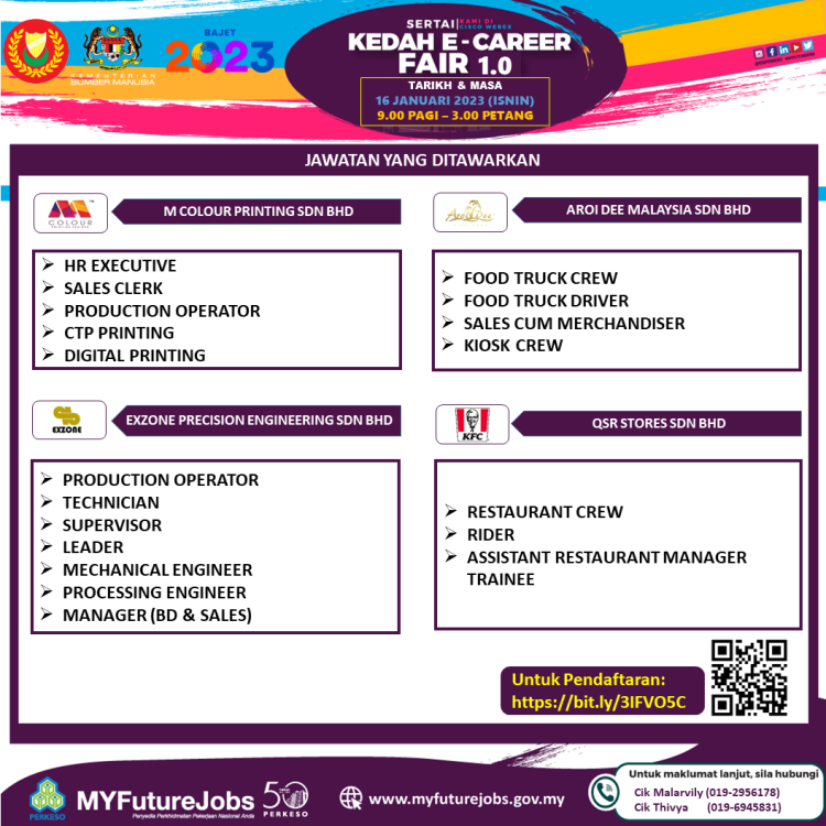 Sekiranya anda berminat untuk sertai, pastikan anda buat pendaftaran sebelum hari temuduga, iaitu 15 Januari 2023. Pencari kerja yang berminat untuk sertai karnival kerjaya tersebut boleh buat pendaftaran melalui pautan berikut: