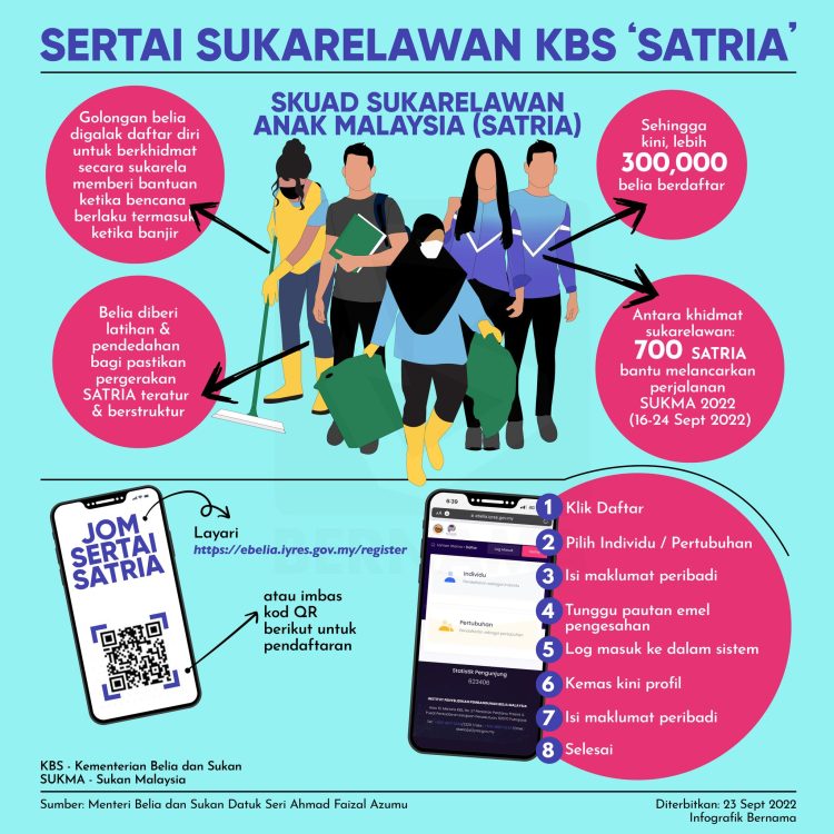 Belia yang berminat untuk sertai sukarelawan Kementerian Belia Sukan (KBS) ‘SATRIA’ adalah dipelawa untuk buat pendaftaran sekarang!