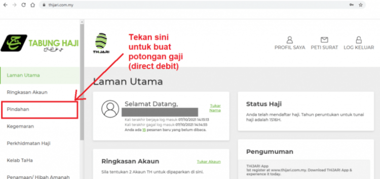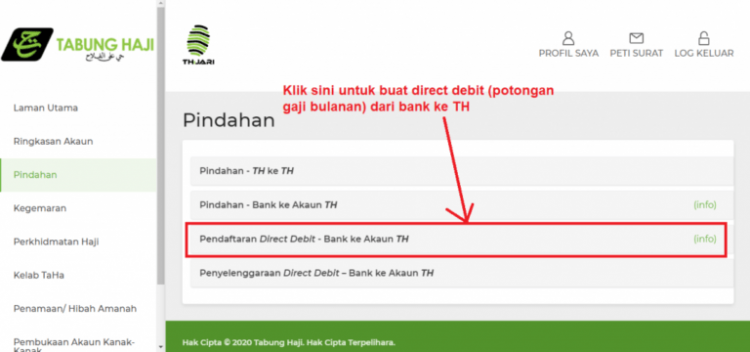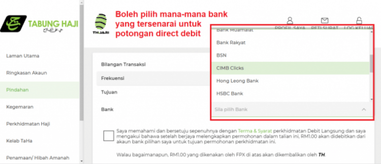 Berikut adalah panduan membuat potongan haji setiap bulan (direct debit) untuk simpanan di Tabung Haji: