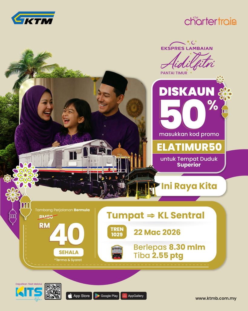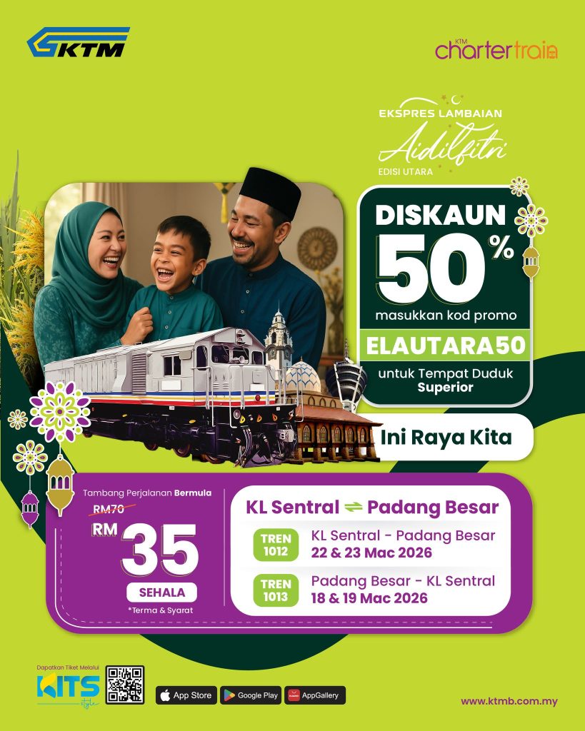 Diskaun 50% Tiket Tren KTMB Aidilfitri 2026 (Utara & Pantai Timur) Kini Dibuka