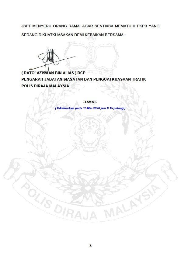 Menurutnya lagi, kempen ini juga adalah langkah jabatan bagi menggalakkan orang ramai mematuhi Perintah Kawalan Pergerakan yang sedang dikuatkuasakan di seluruh negara.