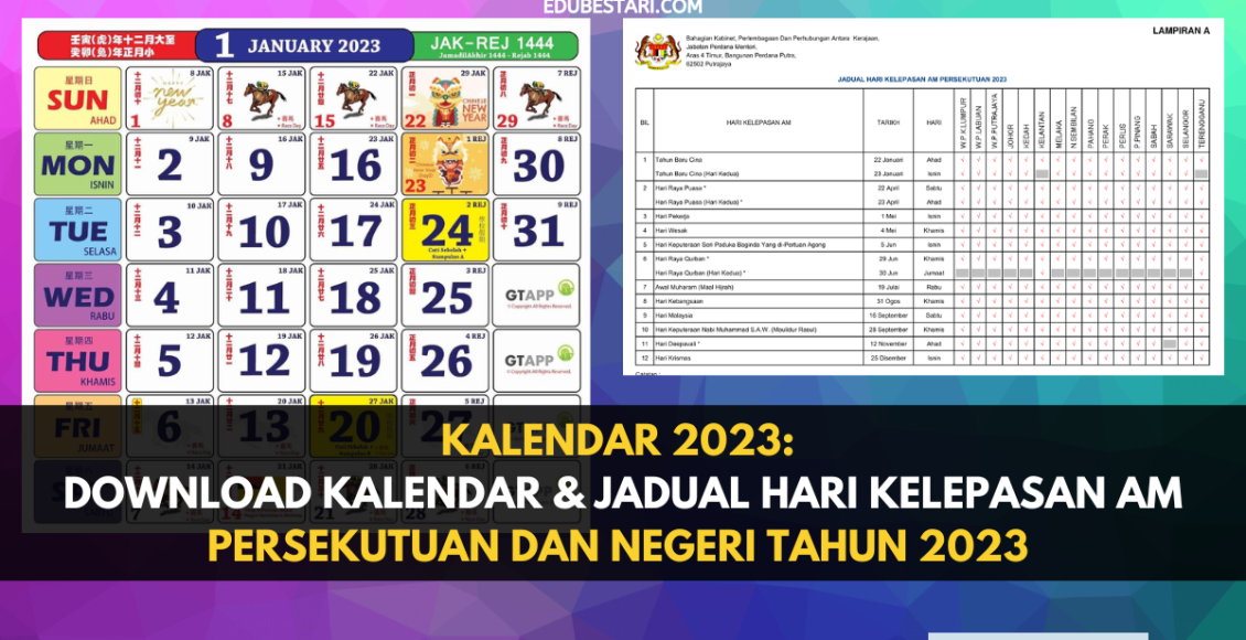 Berikut adalah jadual hari kelepasan am persekutuan dan negeri tahun 2023 yang anda boleh muat turun: