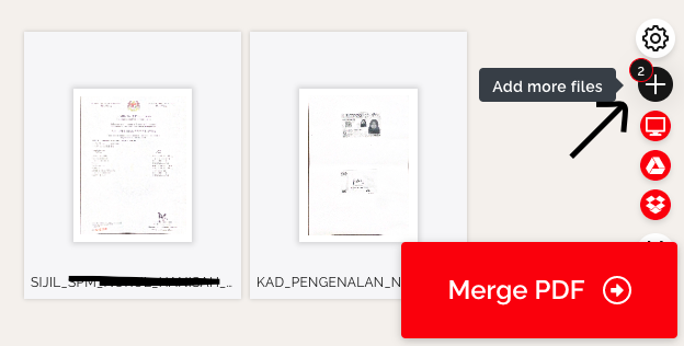 - Klik Add More Files untuk tambah dokumen yang ingin anda gabungkan
