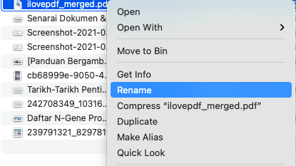 Apa yang perlu anda lakukan adalah kumpuklan semua dokumen yang ingin anda gabungkan dalam pdf dan ikut panduan yang akan dikongsikan di bawah. Selepas dah digabungkan, anda boleh tukar nama fail tersebut ke nama fail yang anda mahu.
