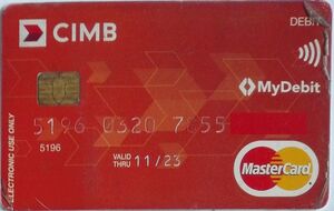 - CIMB MyDebit Mastercard (dahulunya dikenali sebagai CIMB Tesco Debit Mastercard)
