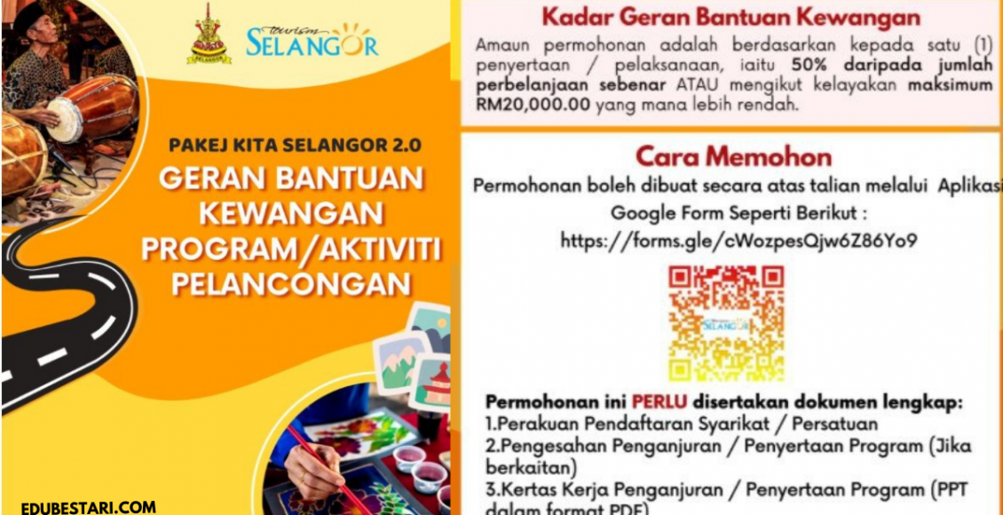 Antara insentif yang disebutkan adalah Geran Bantuan Kewangan Program/ Aktiviti Pelancongan Negeri Selangor dengan peruntukan RM1 juta.