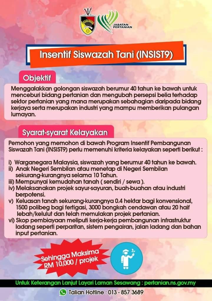 INSIST9: Tawaran Geran Insentif Siswazah Tani N. Sembilan Sehingga RM10,000 Dibuka