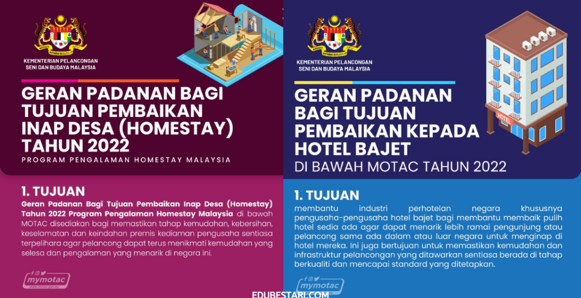 Bagi pengusaha Homestay dan Hotel Bajet yang memerlukan bantuan geran ditawarkan untuk pembaikan, anda boleh dapatkan maklumat lanjut di perkongsian bawah.
