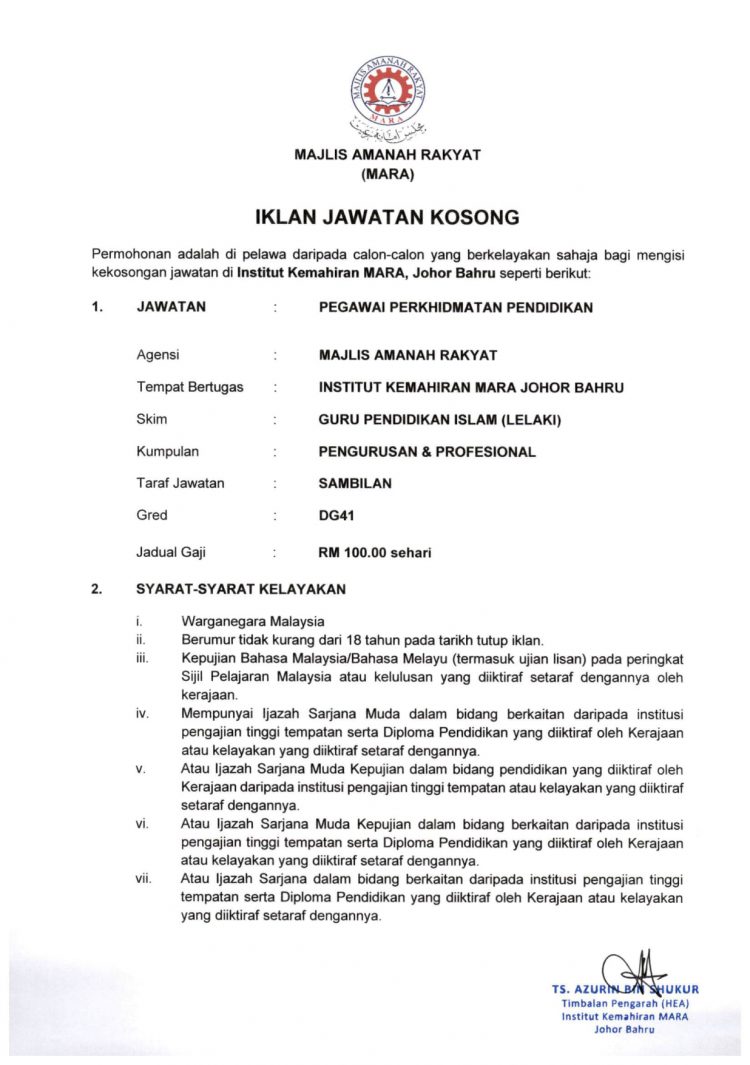 - Nama Majikan: Majlis Amanah Rakyat (MARA)