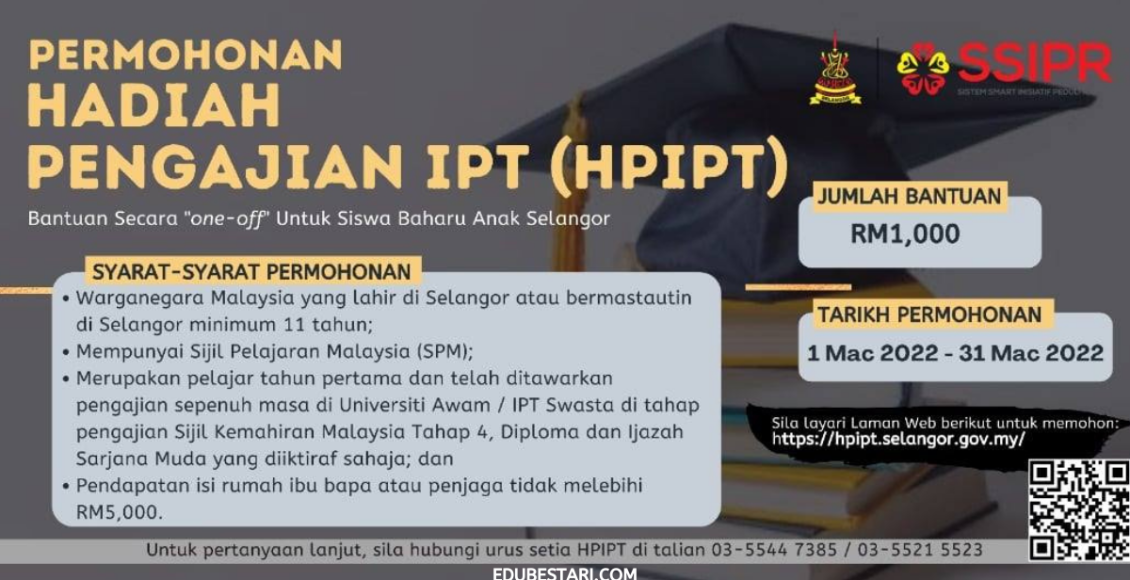 - Permohonan Hadiah engajian IPT (HPIPT) Kerajaan Negeri Selangor boleh dibuat secara atas talian (online) dengan melayari laman web Sistem Permohonan HPIPT (http://hpipt.selangor.gov.my)