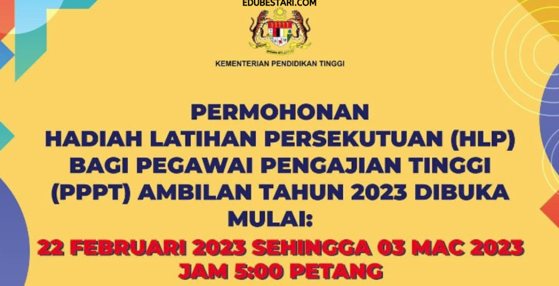 Kementerian Pengajian Tinggi menawarkan penajaan skim Hadiah Latihan Persekutuan (HLP) dengan kemudahan Cuti Belajar Bergaji Penuh (CBBP) bagi mengikuti pengajian kursus-kursus jangka panjang secara SEPENUH MASA di peringkat Sarjana dan Ph.D di Institusi Pengajian Tinggi Awam di Dalam Negara bagi Sesi Pengajian Tahun Semester 1 2023/2024.