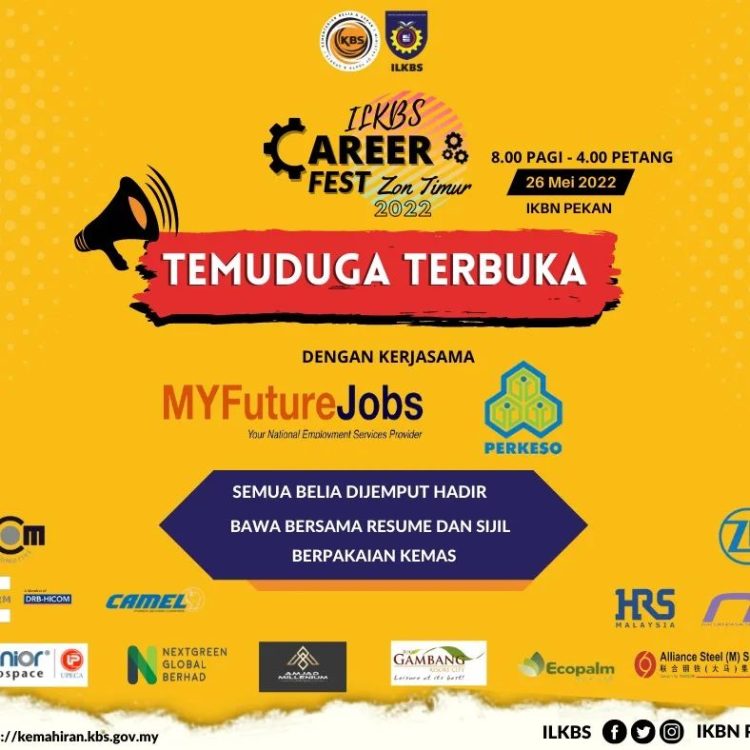 Panggilan buat belia yang sedang mencari peluang pekerjan terutama lepasan sekolah dan graduan yang sedang menganggur! Semua belia dijemput untuk hadir ke temuduga terbuka kerjaya ILKBS Career Fest Zon Timur 2022 yang akan diadakan pada 26 Mei 2022. Lebih 1,200 peluang pekerjaan menanti anda.