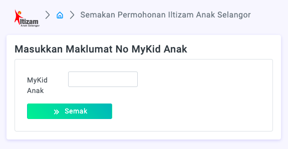 - Masukkan Maklumat No. MyKid Anak di ruangan disediakan dan klik Semak