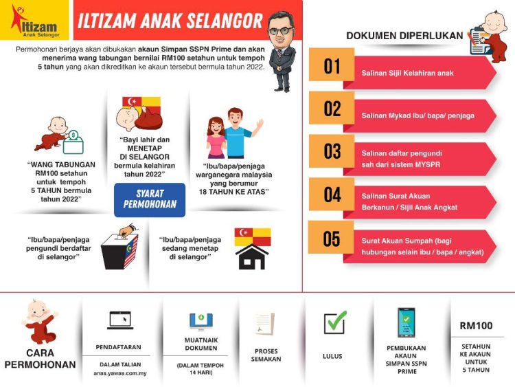 Iltizam Anak Selangor: Mohon Bantuan RM100 Setiap Tahun Untuk Kelahiran Anak Selangor