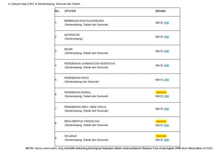 - Pemilihan opsyen di JADUAL B adalah untuk calon yang memiliki kepujian dalam Bahasa Cina SAHAJA yang layak memohon. Rujuk JADUAL B: