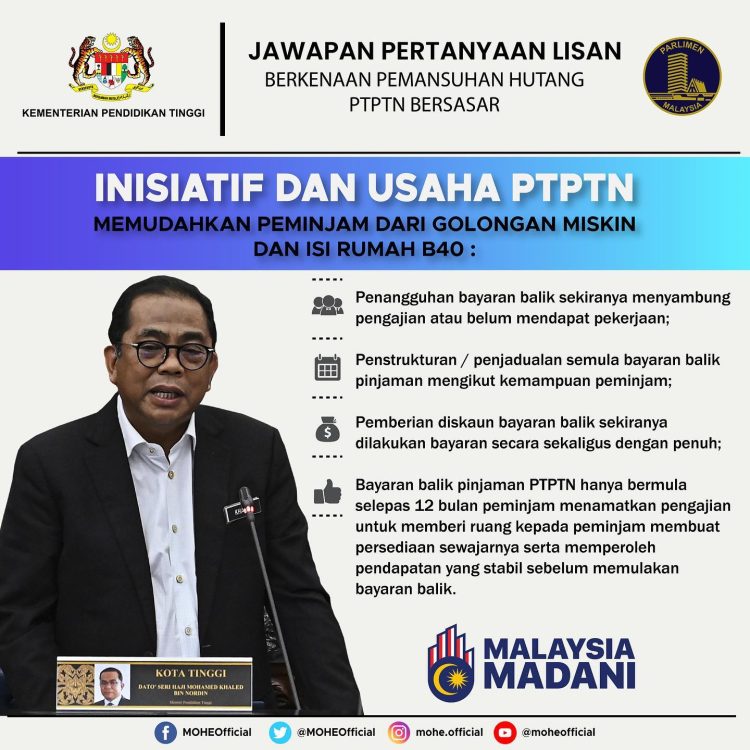 Inisiatif Dan Usaha PTPTN Memudahkan Peminjam Dari Golongan Miskin Dan B40