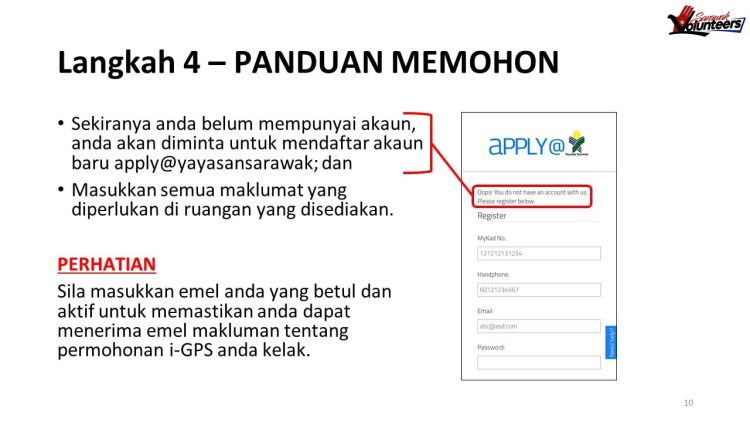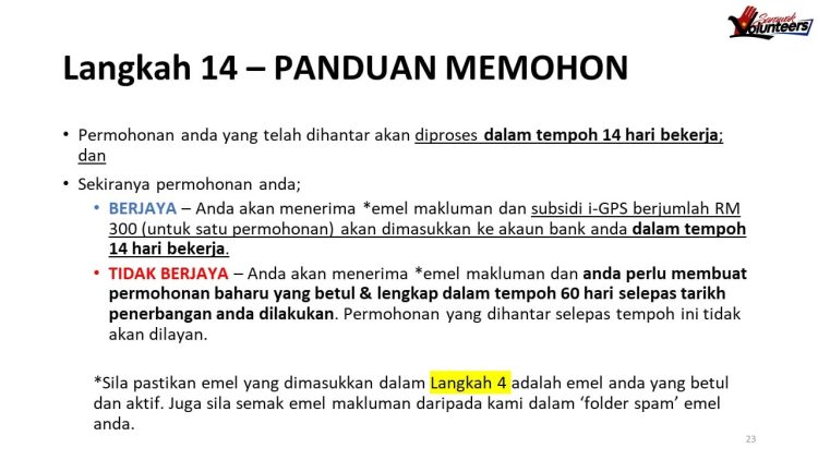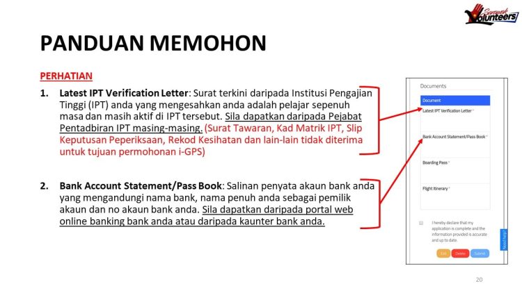 Permohonan yang lewat, tidak lengkap, diragui dan/atau palsu tidak akan dilayan dan akan ditolak tanpa notis. Setiap permohonan adalah tertakluk kepada terma dan syarat permohonan i-GPS yang telah ditetapkan.