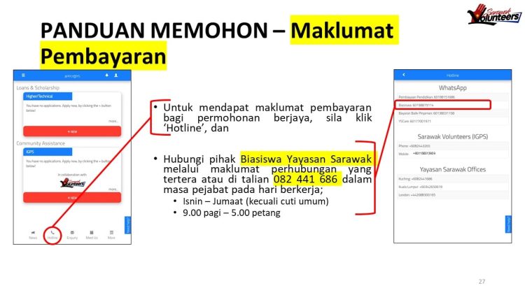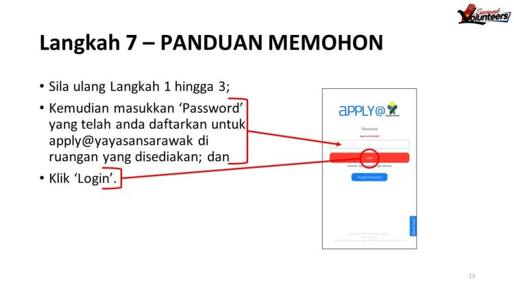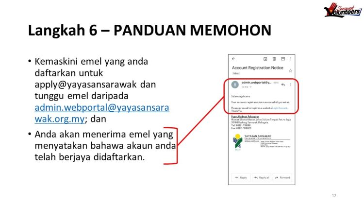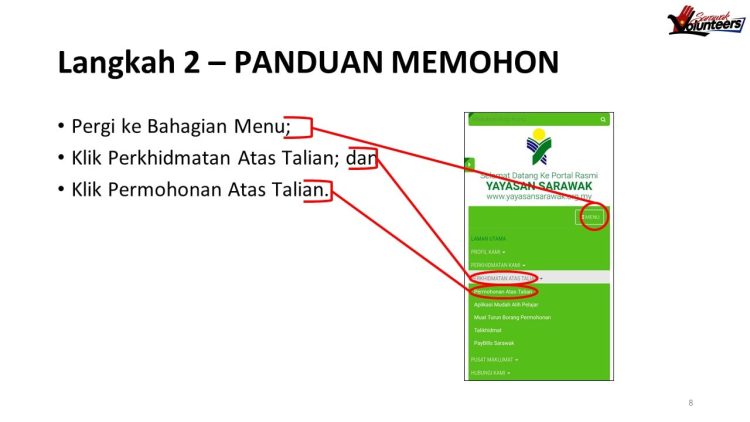 - Melalui sistem laman web yayasansarawak.org.my; atau