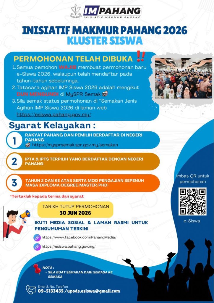 Inisiatif Makmur Pahang (IMP) 2026 Kluster Siswa: Permohonan e-Siswa Dibuka Hingga 30 Jun 2026