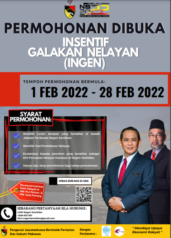 Untuk sebarang pertanyaan dan maklumat lanjut, anda boleh hubungi LKIM Negeri Sembilan di talian +606 675 1911 atau emel ke alamat lkim.negerisembilan@gmail.com