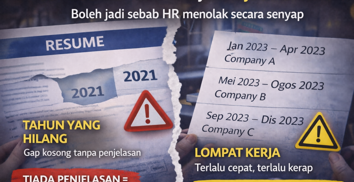 Artikel ini menghuraikan bagaimana HR menilai isu “gap” dan job hopping, mengapa ia dianggap red flag, serta cara calon boleh mengawal naratif resume tanpa menipu atau menutup fakta.