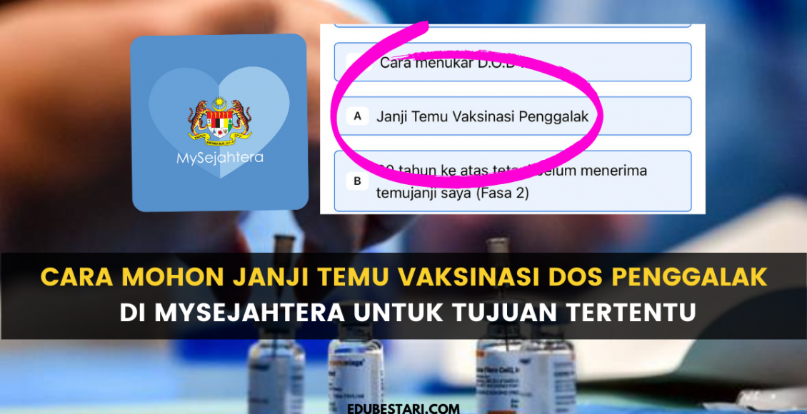 Melalui laman Twitter, @JKJAVMY telah kongsikan panduan untuk memohon dos penggalak bagi tujuan umrah melalui aplikasi MySejahtera. Ikuti perkongsian di bawah untuk rujuk panduan mohon janji temu vaksinasi dos penggalak.