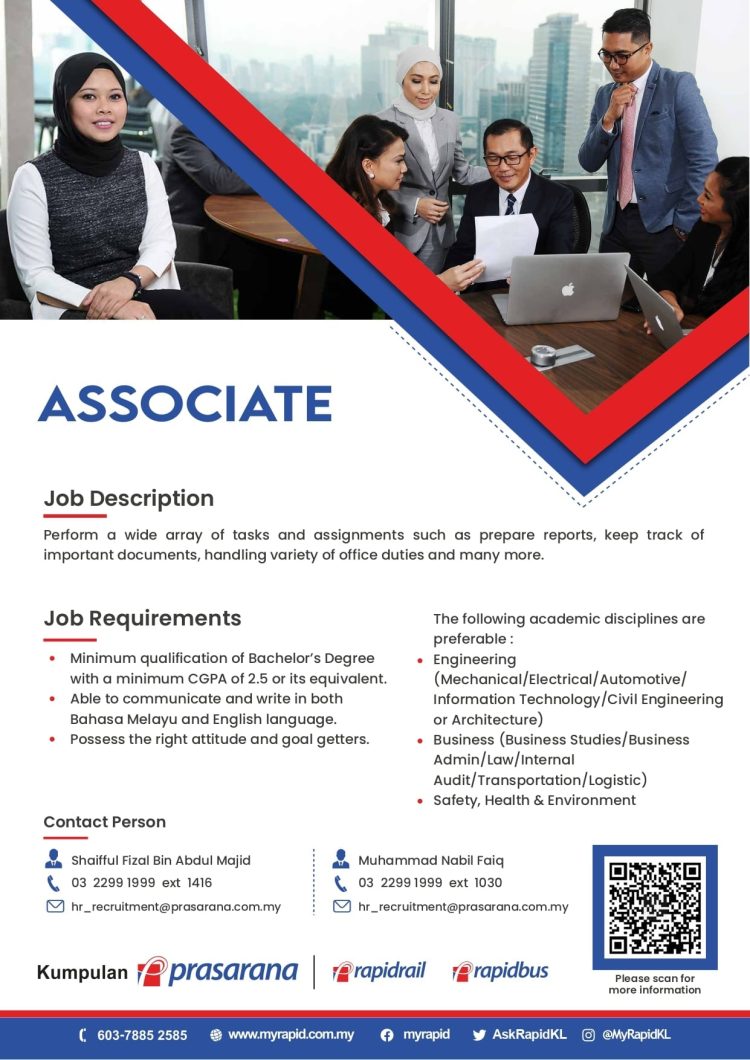 Ikuti perkongsian di bawah untuk maklumat lanjut jawatan ditawarkan di Prasarana dan panduan buat permohonan secara online.