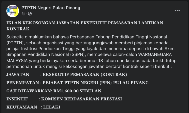 Cara Mohon Jawatan Eksekutif Pemasaran Di PTPTN Dengan Kelayakan Minima SPM