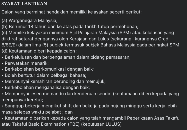 – Keutamaan diberikan kepada calon yang telah mengambil Peperiksaan Asas Takaful atau Takaful Basic Examination (TBE) (keputusan LULUS)