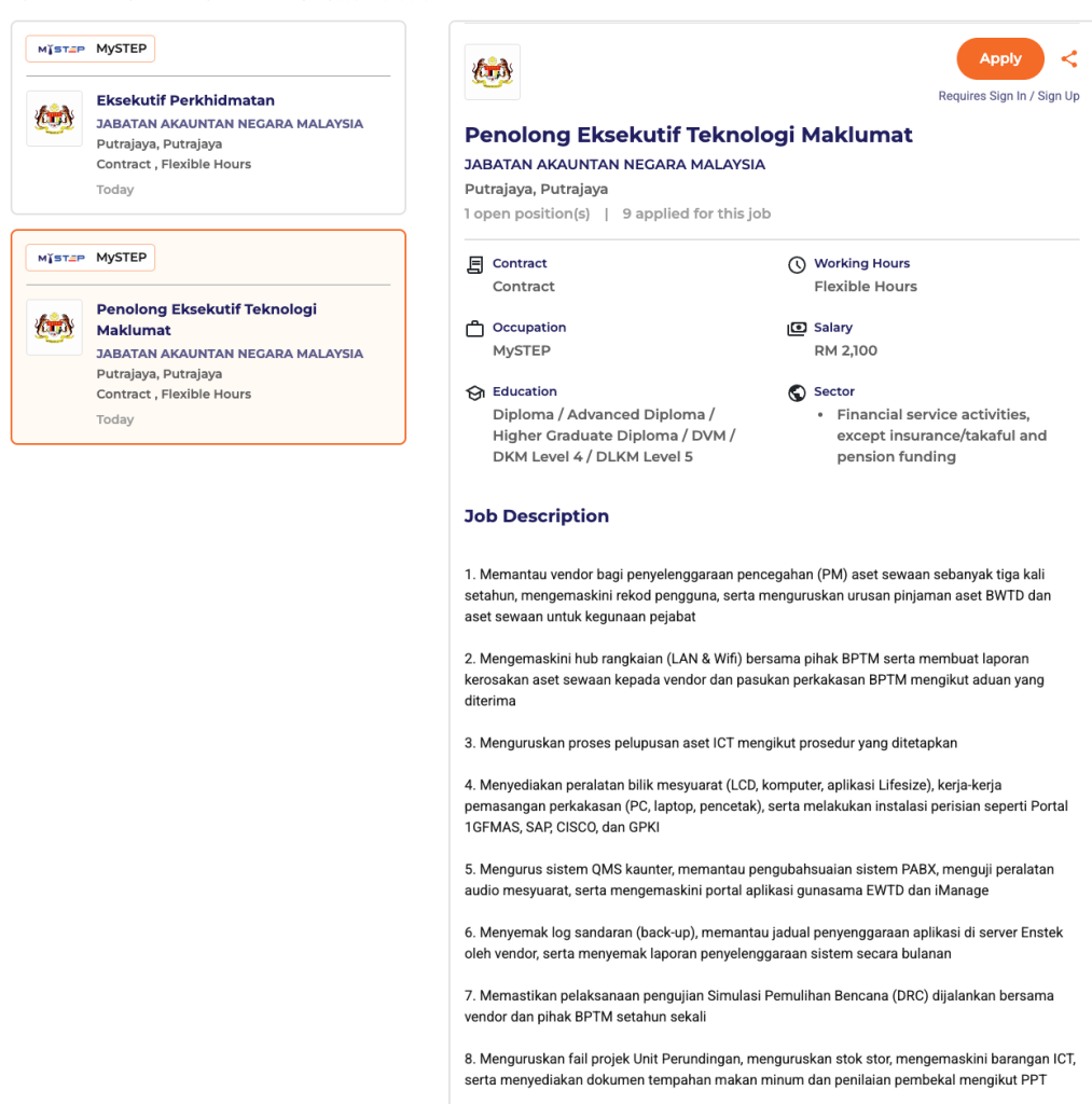 | Jenis Jawatan | Kontrak (MySTEP) |