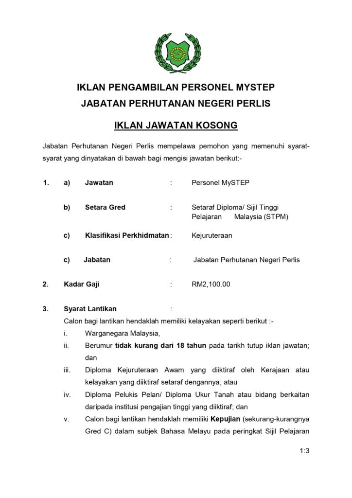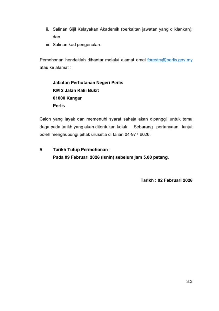 Jawatan MySTEP Jabatan Perhutanan Negeri Perlis 2026 – 2 Kekosongan Teknikal & Penyelidikan | Mohon Sebelum 9 Februari