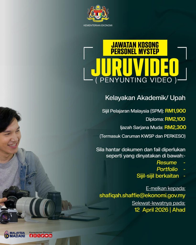 Jawatan Juruvideo MySTEP di Kementerian Ekonomi ini merupakan peluang terbaik untuk anda yang mempunyai minat dan kemahiran dalam bidang video editing dan kreatif digital.