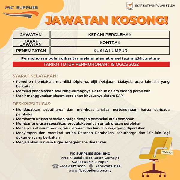 Bagi yang berminat, permohonan boleh dibuat melalui email sehingga 19 Ogos 2022. Penempatan bagi calon yang berjaya adalah di Kuala Lumpur.