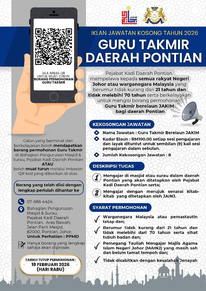Jawatan Guru Takmir Berelaun JAKIM di Pontian ini bukan untuk semua orang.