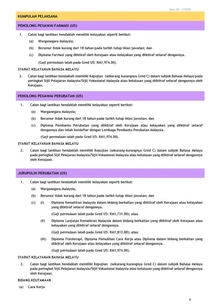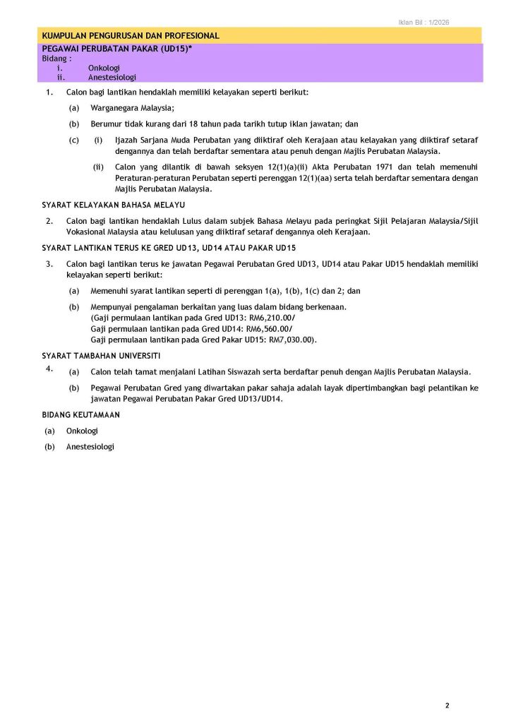 • Tarikh tutup: 18 Februari 2026 (Rabu)