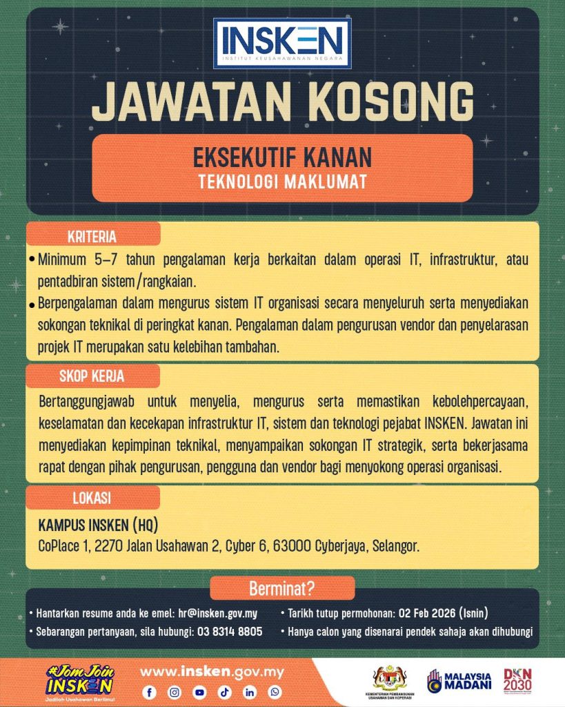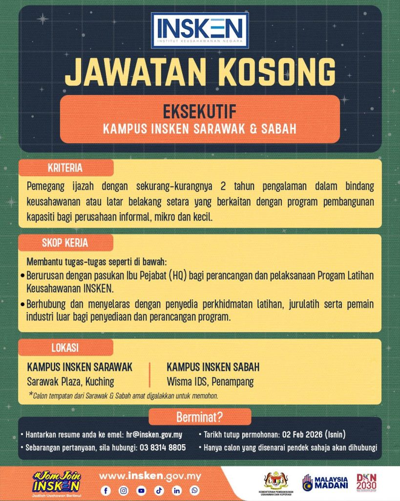 • 📧 Hantar resume ke: hr@insken.gov.my