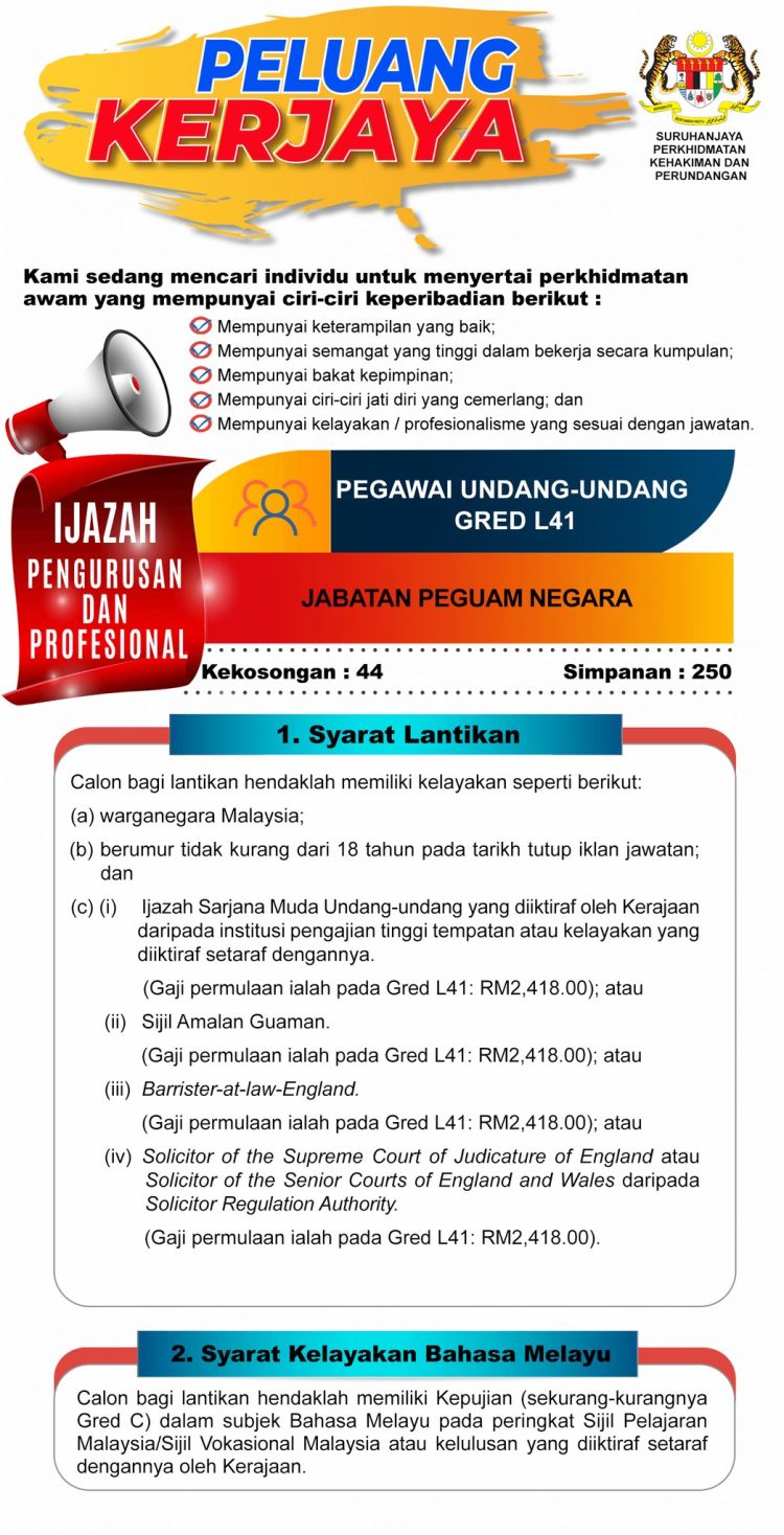 - Nama Jawatan: Pegawai Undang-Undang Gred L41