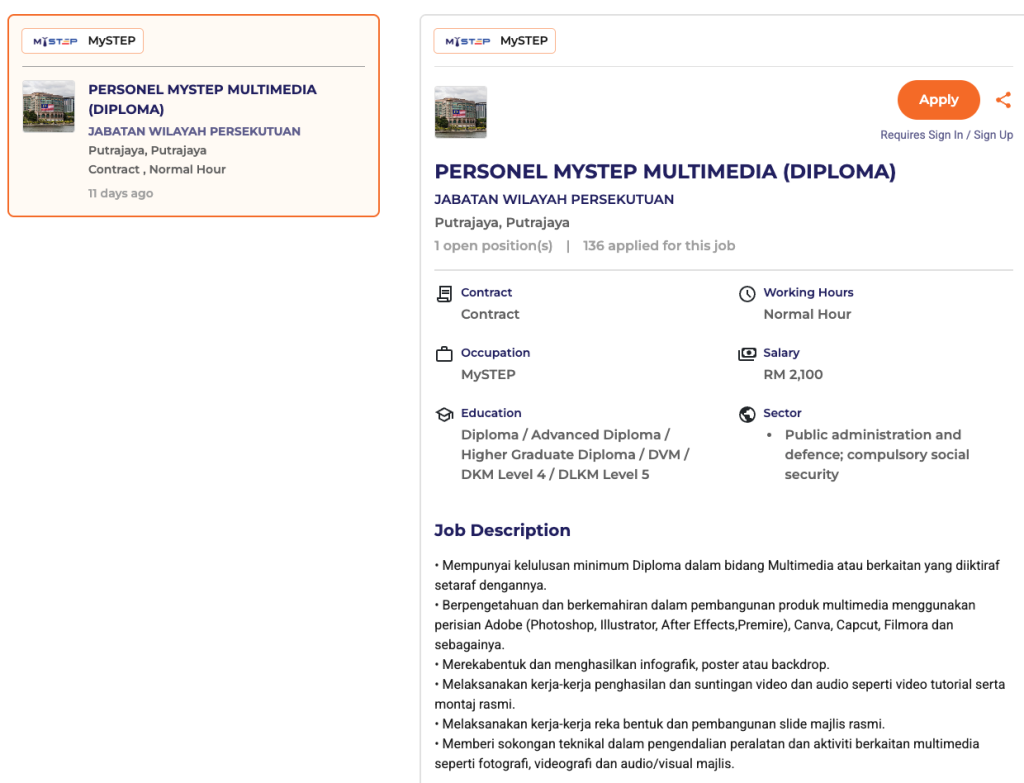 - Cari jawatan “MySTEP Multimedia (Diploma)”