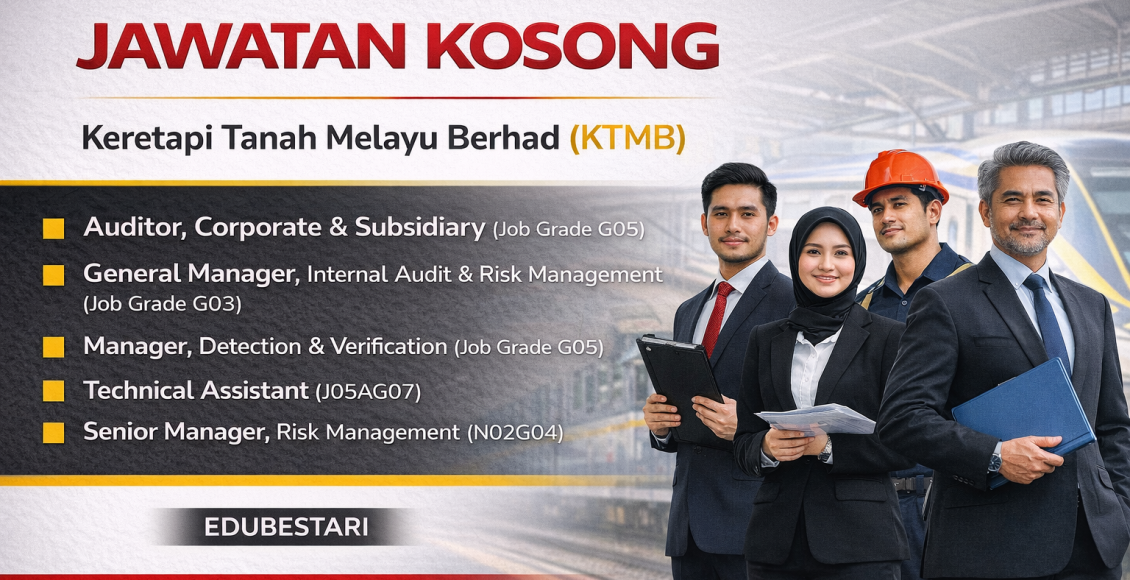 Jawatan kosong KTMB 2026 menawarkan peluang kerjaya bertaraf profesional & pengurusan yang sesuai untuk calon berpengalaman dalam audit, pengurusan risiko, integriti dan kejuruteraan.